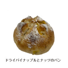 ほんのり甘みのあるドライパイナップルに爽やかなレモンピールを混ぜ込み、アクセントにナッツ類とスパイスと黒胡椒で大人の味に仕上げました。原材料春よ恋、国産全粒強力粉、有機ライ麦粉、ドライパイナップル、有機カシューナッツ、有機レモンピー…