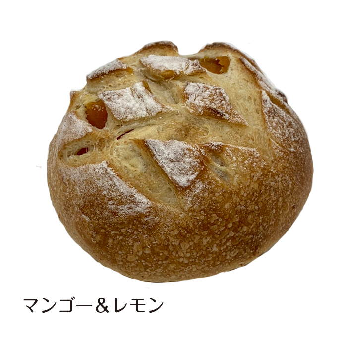 甘みと酸味のバランスがよくクリーミーな味わいのマンゴーをたっぷり混ぜ込みました。アクセントに爽やかなレモンピールを配合。夏におすすめのパンです。【原材料】北海道多寄産強力粉(春よ恋)、国産全粒強力粉、ドライマンゴー、有機レモンピール…